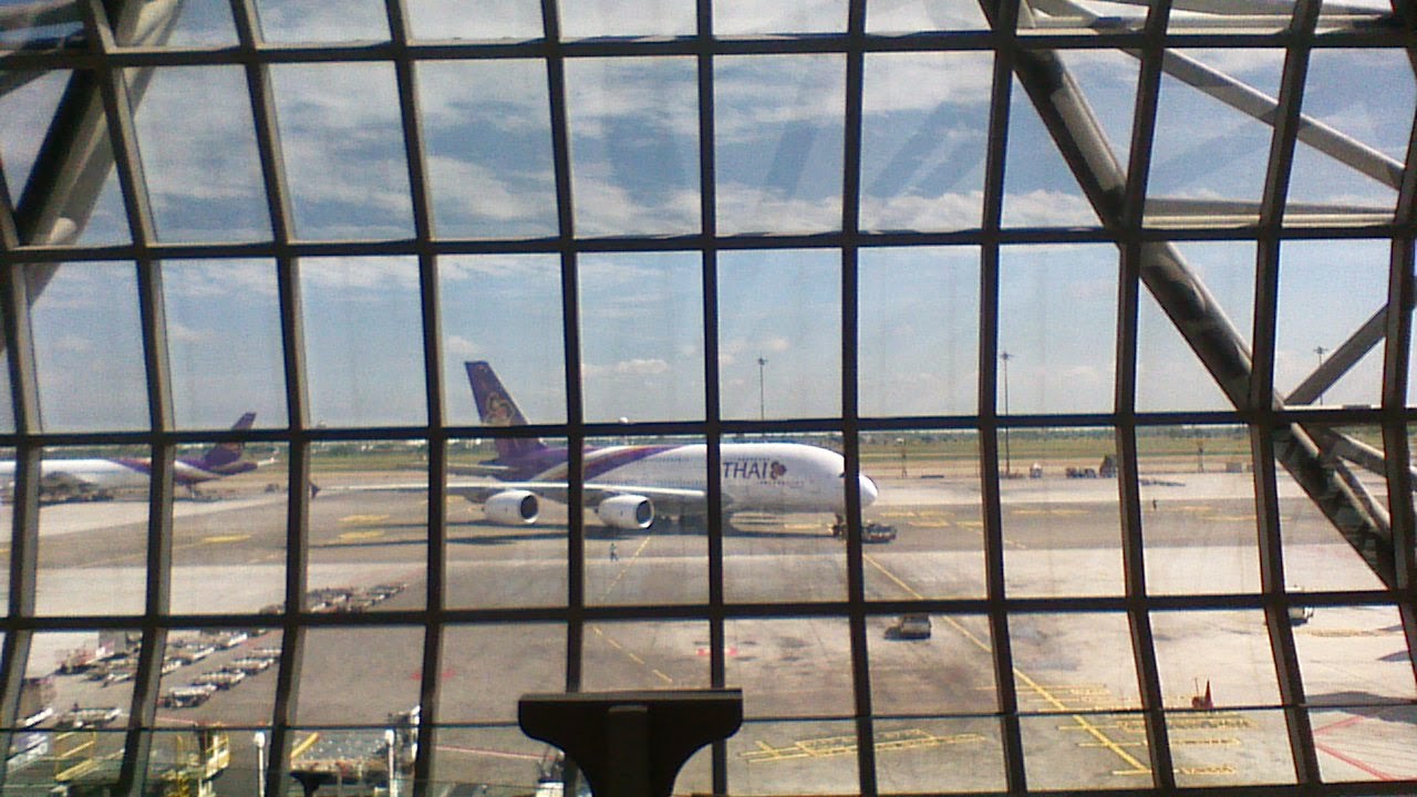No troubles checking in for our flight on time to Siem Reap, while at the next gate Thai’s A380 is just leaving for Hong Kong 4 hours late.
