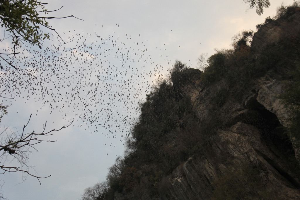 Dann vorbei an einer Imbiss-Rattenbraterei zur Bat Cave, aus der zur Dämmerung ca. 3 Millionen Fledermäuse ausschwärmen. Beeindruckend.
